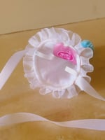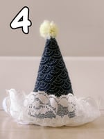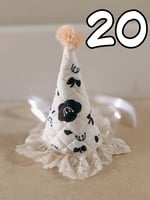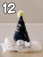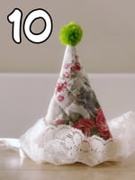 Each hat has lace trim, satin ribbon ties, pompom, and elastic loops for bobby pins/hairclips