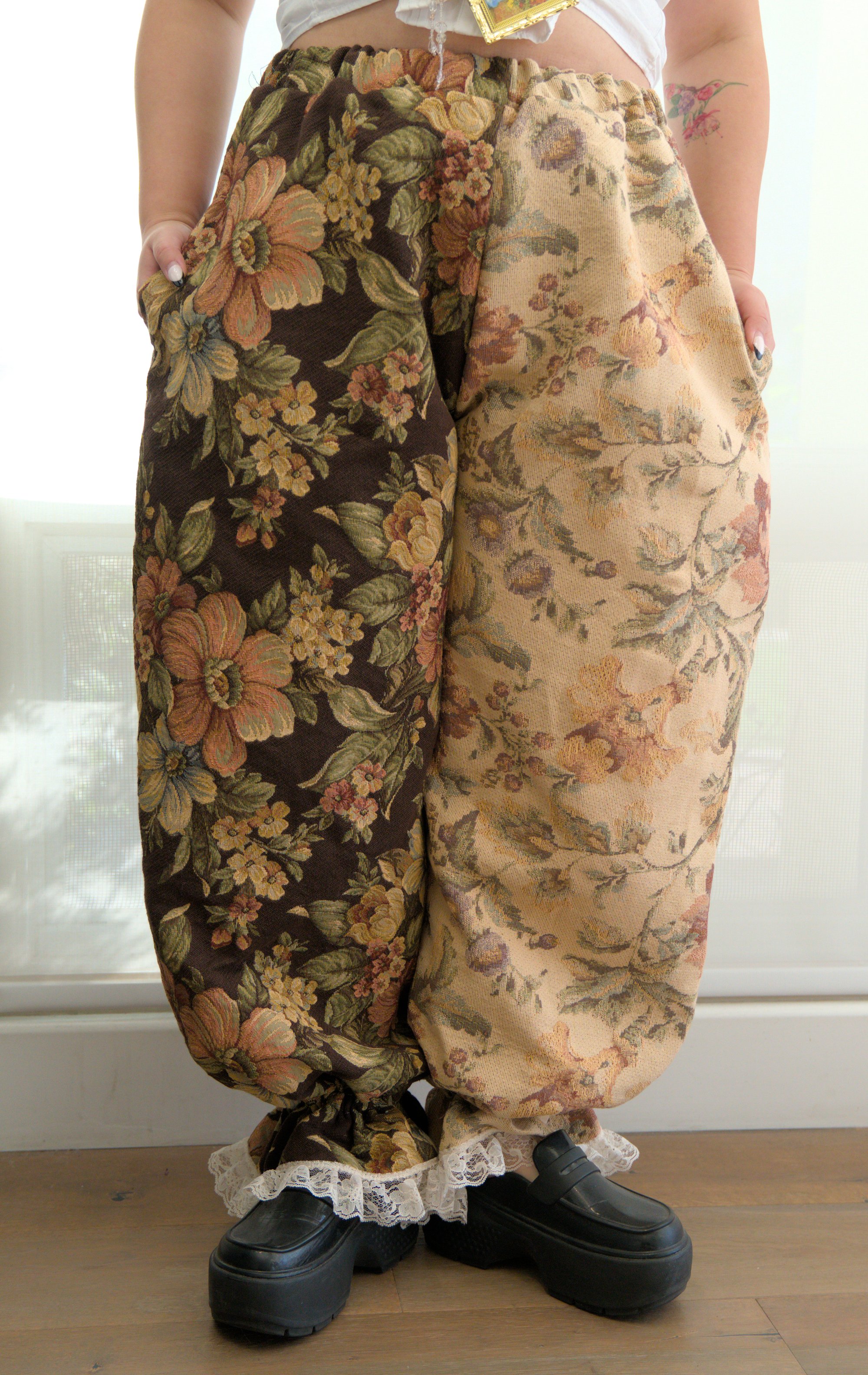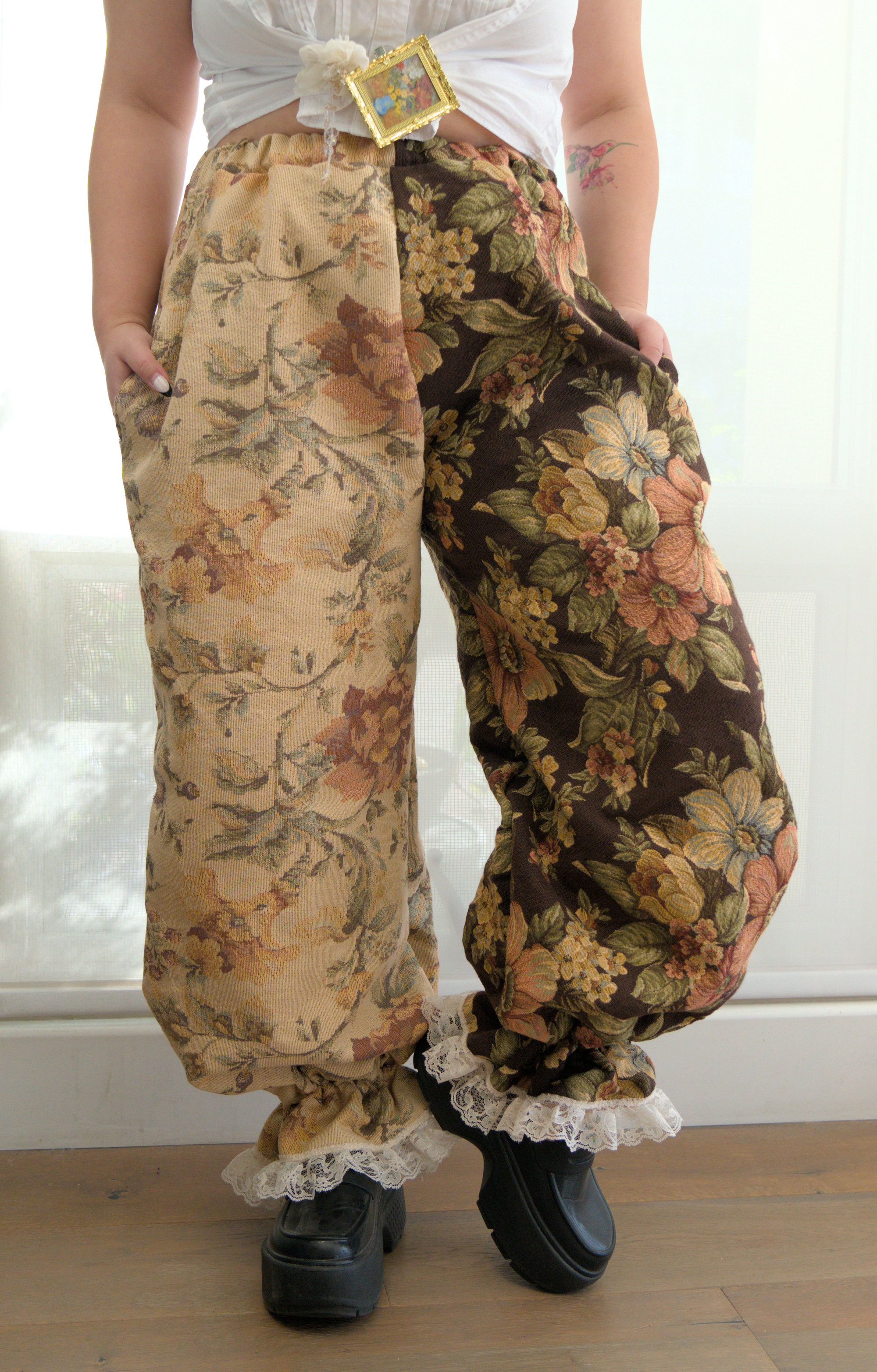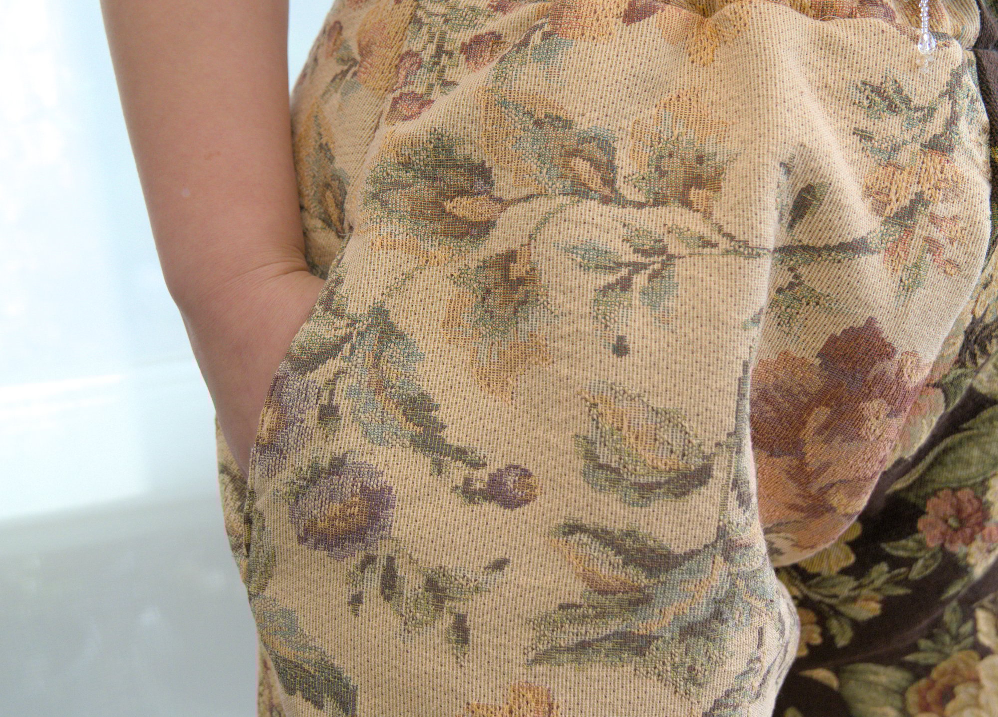 Handmade from remnant fabric and all completely sourced from second hand fabric shops and personal collections.