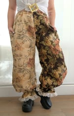 XS- M has khaki floral on right side, and brown floral print on the left.