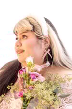 This piece is not fine jewelry, materials consist of satin bows, metal, and rhinestones. Earrings may come slightly different from reference image, such as slightly different bow shape as each piece is handmade.