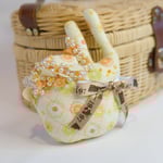 This snail is made from the remnant scrap fabric and hand beaded with faux pearls and sequins.
