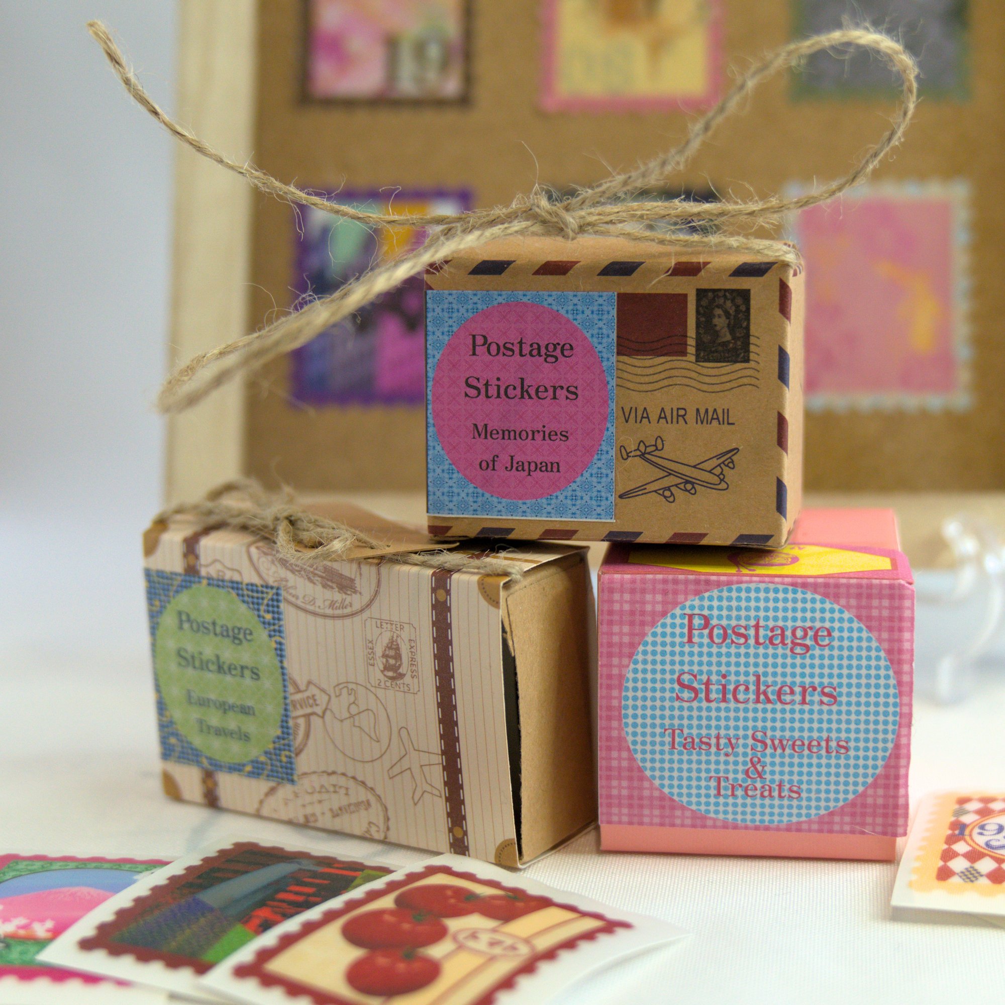 Each box contains a set of 12 postage stamp stickers, themed after the travels and memories Mai has experienced.