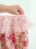 XXS- M features a gingham pink waist band, versus the L-2XL features the same floral fabric for the waistband.