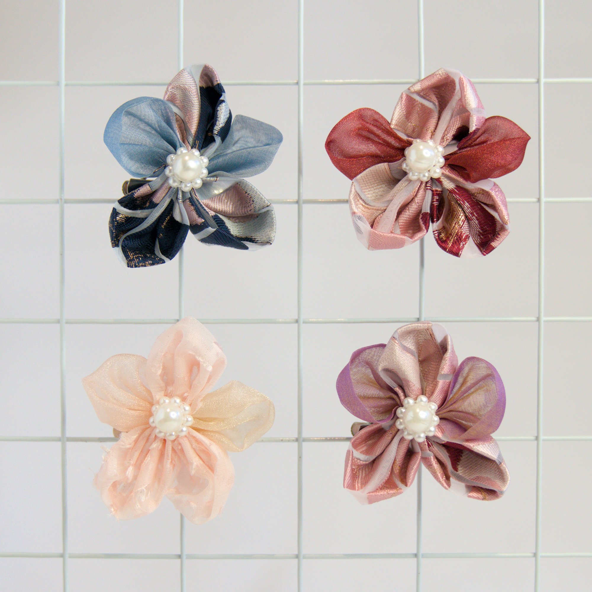 These traditional Japanese hair ornaments are made with zero-waste sustainable practices; each flower uses the remnant scraps of stored fabric that has either been used for previous projects or locally sourced from second-hand fabric shops.